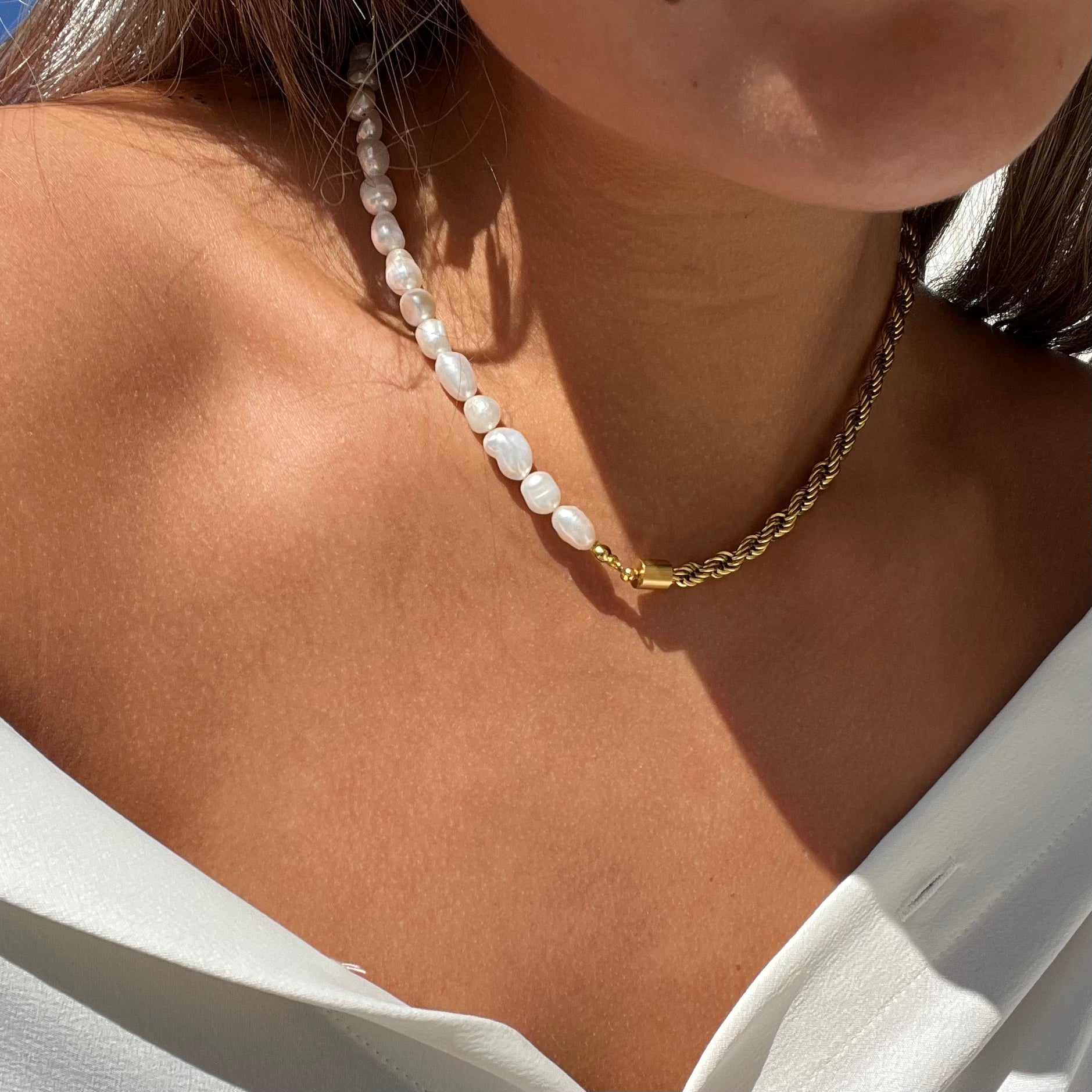 I have sensitive skin and usually can’t wear jewelry daily, but this one doesn’t irritate me at all. Light, elegant, and easy to pair with anything.